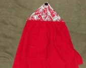 Any New England Lobster Lover will love to have this Lobster hanging towel in their kitchen. The fabric is black and white newspaper print with red lobster all over it. It has a red towel to help carry those yummy lobsters to the table. The button holding this to the stove or refrigerator is a black glitter button.
