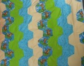We feature cut Tigger fabric with hexagons. We then put them into stripes. We used snuggling flannel and an all natural batting to keep your little angel nice and warm.