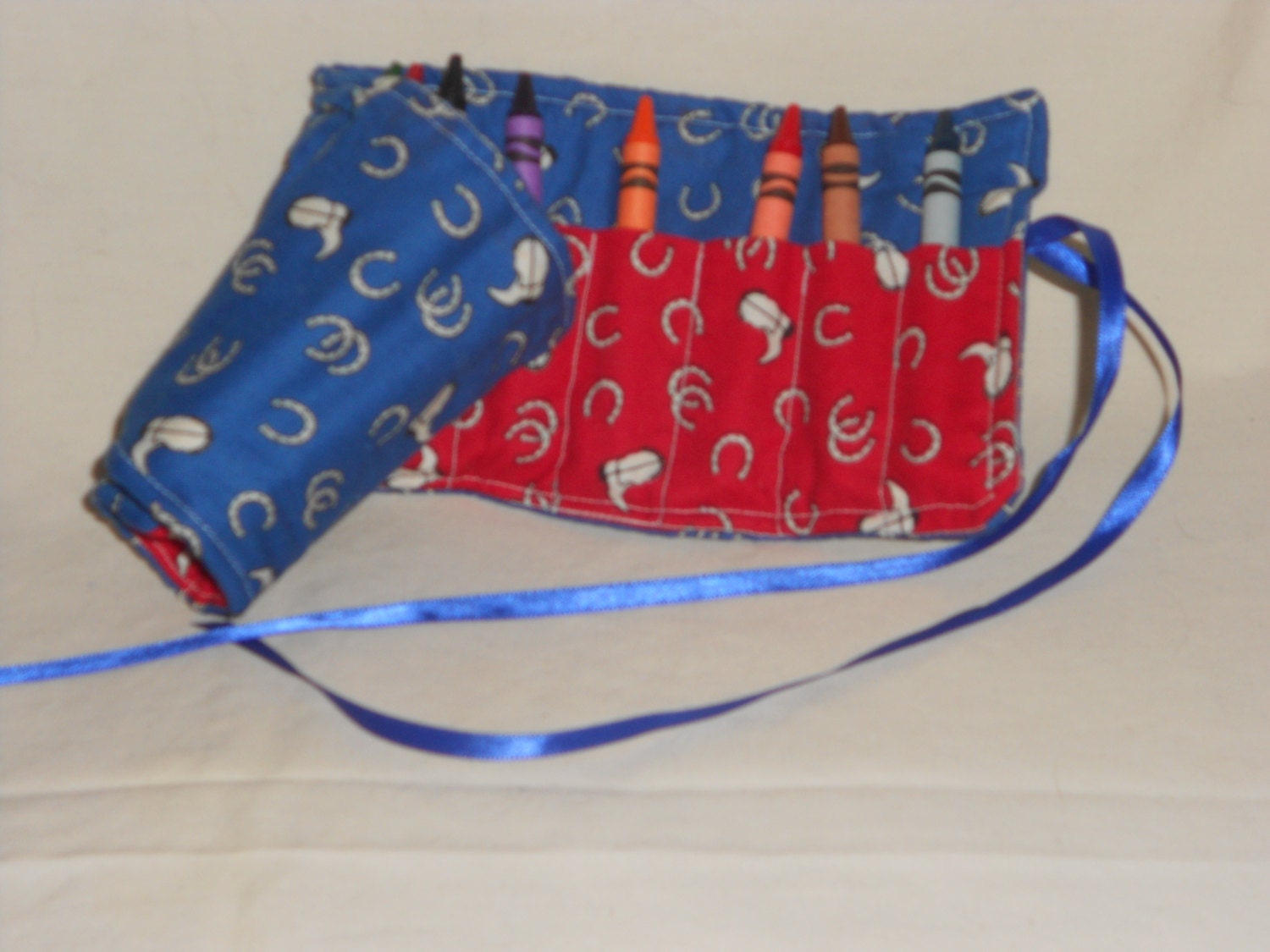 Blue Horseshoe and Cowboy Boots Crayon Roll - $6.00